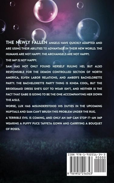 The newly fallen angels have quickly adapted and are using their abilities to advantage in their new world. The humans are not happy. The archangels are not happy. The imp is not happy. Sam has not only found herself ruling Hel but also responsible for the demon controlled section of North America, elven labor relations, and Amber's bachelorette party. The bachelorette party thing is kinda cool, but the bridesmaid dress she's got to wear isn't, and neither is the fact that Gabe is going to be the one accompanying her down the aisle. Worse, Lux has misunderstood his duties in the upcoming nuptials and Sam can't brush this problem under the rug. A terrible evil is coming, and only an imp can stop it-an imp wearing a puffy puce taffeta gown and carrying a bouquet of roses.