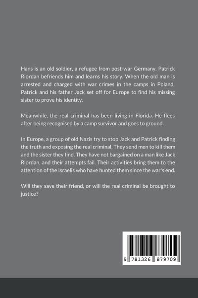Hans is an old soldier, a refugee from post-war Germany. Patrick Riordan befriends him and learns his story. When the old man is arrested and charged with war crimes in the camps in Poland, Patrick and his father Jack set off for Europe to find his missing sister to prove his identity. Meanwhile, the real criminal has been living in Florida. He flees after being recognised by a camp survivor and goes to ground. In Europe, a group of old Nazis try to stop Jack and Patrick finding the truth and exposing the real criminal, They send men to kill them and the sister they find. They have not bargained on a man like Jack Riordan, and their attempts fail. Their activities bring them to the attention of the Israelis who have hunted them since the war's end. Will they save their friend, or will the real criminal be brought to justice?
