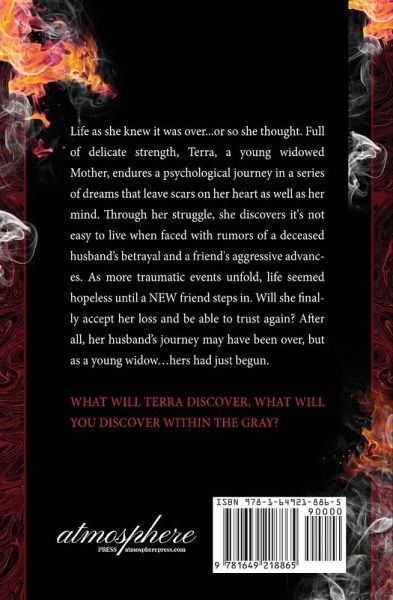 Life as she knew it was over...or so she thought. Full of delicate strength, Terra, a young widowed Mother, endures a psychological journey in a series of dreams that leave scars on her heart as well as her mind. Through her struggle, she discovers it's not easy to live when faced with rumors of a deceased husband's betrayal and a friend's aggressive advances. As more traumatic events unfold, life seemed hopeless until a NEW friend steps in. Will she finally accept her loss and be able to trust again? After all, her husband's journey may have been over, but as a young widow...hers had just begun. What will Terra discover, what will you discover Within the Gray?
