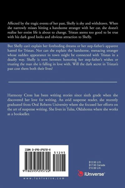 Affected by the tragic events of her past, Shelly is shy and withdrawn. When she narrowly misses hitting a handsome stranger with her car, she doesn't realize her entire life is about to change. Tristan seems too good to be true with his dark good looks and obvious attraction to Shelly. But Shelly can't explain her foreboding dreams or her step-father's apparent hatred for Tristan. Nor can she explain the handsome, menacing stranger whose sudden appearance in town might be connected with Tristan in a deadly way. Shelly is torn between honoring her step-father's wishes or trusting the man she is falling in love with. Will the dark secret in Tristan's past cost them both their lives?