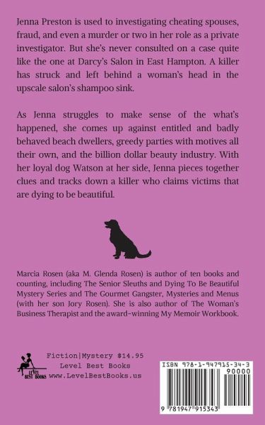 Jenna Preston is used to investigating cheating spouses, fraud, and even a murder or two in her role as a private investigator. But she's never consulted on a case quite like the one at Darcy's Salon in East Hampton. A killer has struck and left behind a woman's head in the upscale salon's shampoo sink. As Jenna struggles to make sense of the what's happened, she comes up against entitled and badly behaved beach dwellers, greedy parties with motives all their own, and the billion dollar beauty industry. With her loyal dog Watson at her side, Jenna pieces together clues and tracks down a killer who claims victims that are dying to be beautiful.
