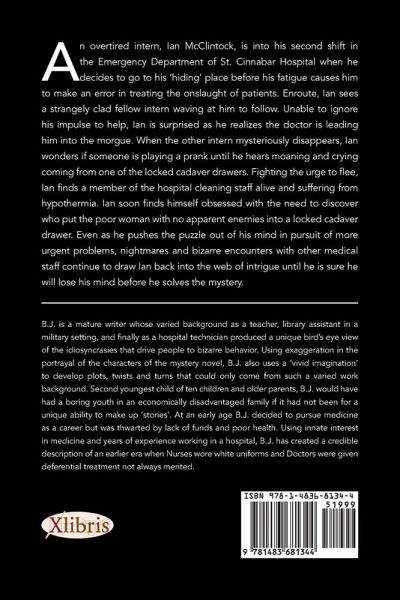An overtired intern, Ian McClintock, is into his second shift in the Emergency Department of St. Cinnabar Hospital when he decides to go to his 'hiding' place before his fatigue causes him to make an error in treating the onslaught of patients. Enroute, Ian sees a strangely clad fellow intern waving at him to follow. Unable to ignore his impulse to help, Ian is surprised as he realizes the doctor is leading him into the morgue. When the other intern mysteriously disappears, Ian wonders if someone is playing a prank until he hears moaning and crying coming from one of the locked cadaver drawers. Fighting the urge to flee, Ian finds a member of the hospital cleaning staff alive and suffering from hypothermia. Ian soon finds himself obsessed with the need to discover who put the poor woman with no apparent enemies into a locked cadaver drawer. Even as he pushes the puzzle out of his mind in pursuit of more urgent problems, nightmares and bizarre encounters with other medical staff continue to draw Ian back into the web of intrigue until he is sure he will lose his mind before he solves the mystery.
