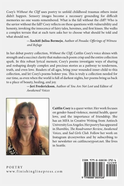 Without the Cliff is a narrative exploration of how the reality of trauma and healing can co-exist. Sometimes stepping forward, sometimes stepping back, this collection provides the reader with glimpses of the possibility of healing and change without the magical promise of "happily ever after." By highlighting the rebellious joys that can emerge through queer love and friendship, Caitlin Coey tells a story that intertwines the truths of pain, healing, love, and survival.