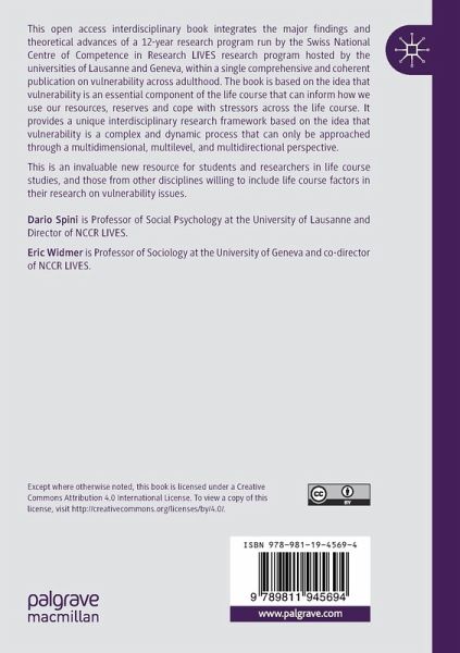 This open access interdisciplinary book integrates the major findings and theoretical advances of a 12-year research program run by the Swiss National Centre of Competence in Research LIVES research program hosted by the universities of Lausanne and Geneva, within a single comprehensive and coherent publication on vulnerability across adulthood. The book is based on the idea that vulnerability is an essential component of the life course that can inform how we use our resources, reserves and cope with stressors across the life course. It provides a unique interdisciplinary research framework based on the idea that vulnerability is a complex and dynamic process that can only be approached through a multidimensional, multilevel, and multidirectional perspective.