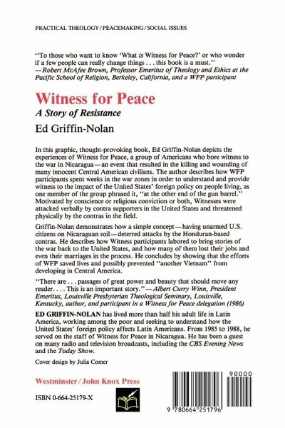 In this graphic, thought-provoking book, Ed Griffin-Nolan depicts the experiences of Witness for Peace, a group of Americans who bore witness to the war in Nicaragua--an event that resulted in the killing and wounding of many innocent Central American civilians. The author describes how WFP participants spent weeks in the war zones in order to understand and provide witness to the impact of the United States' foreign policy on people living, as one member of the group phrased it, ""at the other end of the gun barrel"." Motivated by conscience or religious conviction or both, witnesses were attacked verbally by contra supporters in the United States and threatened physically by the contras in the field.
