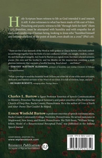 Holy Scripture bears witness to life as God intended it and intends it still. It also witnesses to what has been made of life east of Eden. Preaching and poetic witness to life ""through faith for faith"" (Rom 1:17), therefore, must be attempted with humility and with empathy for all sorts and conditions of human being, looking to Jesus who ""humbled himself and became obedient to the point of death, even death on a cross"" (Phil 2:8).