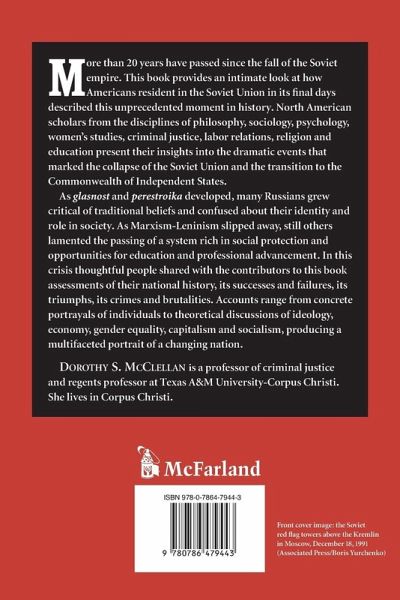 More than 20 years have passed since the fall of the Soviet empire. This book provides an intimate look at how Americans resident in the Soviet Union in its final days described this unprecedented moment in history. North American scholars from the disciplines of philosophy, sociology, psychology, women's studies, criminal justice, labor relations, religion and education present their insights into the dramatic events that marked the collapse of the Soviet Union and the transition to the Commonwealth of Independent States. As glasnost and perestroika developed, many Russians grew critical of traditional beliefs and confused about their identity and role in society. As Marxism-Leninism slipped away, still others lamented the passing of a system rich in social protection and opportunities for education and professional advancement. In this crisis thoughtful people shared with the contributors to this book assessments of their national history, its successes and failures, its triumphs, its crimes and brutalities. Accounts range from concrete portrayals of individuals to theoretical discussions of ideology, economy, gender equality, capitalism and socialism, producing a multifaceted portrait of a changing nation.