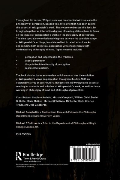 This volume brings together an international group of leading philosophers to focus on the impact of Wittgenstein's work on the philosophy of perception. The ten specially commissioned chapters draw on the complete range of Wittgenstein's writings, from his earliest to latest extant works, and combine both exegetical approaches with engagements with contemporary philosophy of mind.
