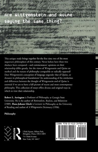 An understanding of the similarities and differences between the thought of Wittgenstein and of Quine is essential if we are to have a full picture of contemporary philosophy. This collection of essays offers diverse and original ways in which to view their relationship.