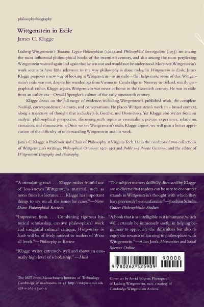 Klagge draws on the full range of evidence, including Wittgenstein's published work, the complete Nachlaß, correspondence, lectures, and conversations. He places Wittgenstein's work in a broad context, along a trajectory of thought that includes Job, Goethe, and Dostoyevsky. Yet Klagge also writes from an analytic philosophical perspective, discussing such topics as essentialism, private experience, relativism, causation, and eliminativism. Once we see Wittgenstein's exile, Klagge argues, we will gain a better appreciation of the difficulty of understanding Wittgenstein and his work.