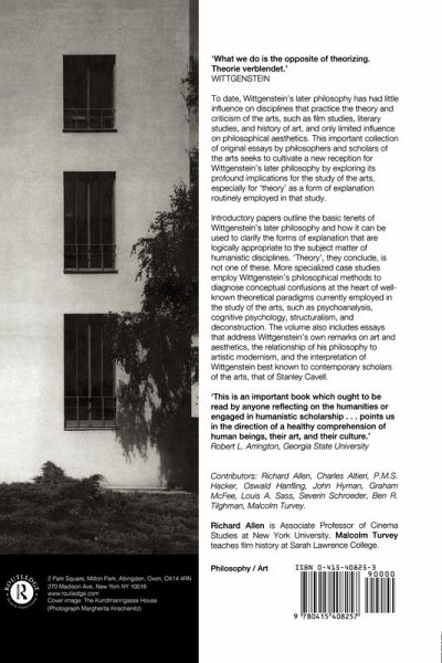 Chapter 1 Wittgenstein's Later Philosophy Richard Allen Malcolm Turvey; Part 1 Wittgenstein the Humanities and Art; Chapter 2 Wittgenstein and the Autonomy of Humanistic Understanding P.M.S. Hacker; Chapter 3 Wittgenstein on Language Art and Humanity Oswald Hanfling; Chapter 4 Wittgenstein Performing Art and Action Graham McFee; Chapter 5 Is Scepticism a 'Natural Possibility' of Language? Malcolm Turvey; Chapter 6 The Urn and the Chamber Pot John Hyman; Part 2 Theory and the Arts; Chapter 7 Language and Painting Border Wars and Pipe Dreams Ben R. Tilghman; Chapter 8 Cognitive Film Theory Richard Allen; Chapter 9 The Coded-Message Model of Literature Severin Schroeder; Chapter 10 Wittgenstein on Consciousness and Language Charles Altieri; Chapter 11 Wittgenstein Freud and the Nature of Psychoanalytic Explanation Louis A. Sass;