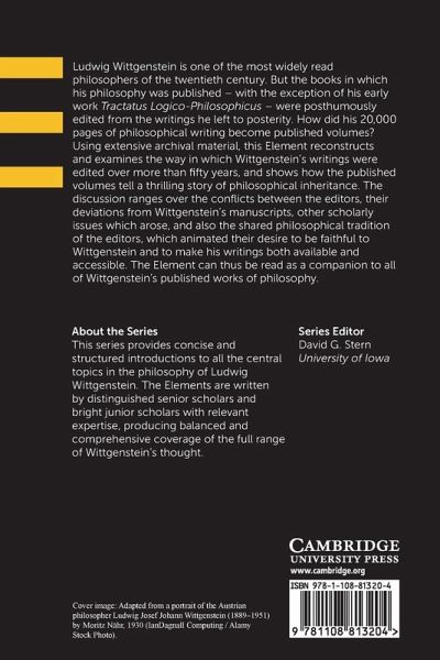 Ludwig Wittgenstein is one of the most widely read philosophers of the twentieth century. But, with one exception, the books in which his philosophy was published were posthumously edited from the writings he left to posterity. This Element explores how his 20,000 pages of philosophical writing became published volumes.