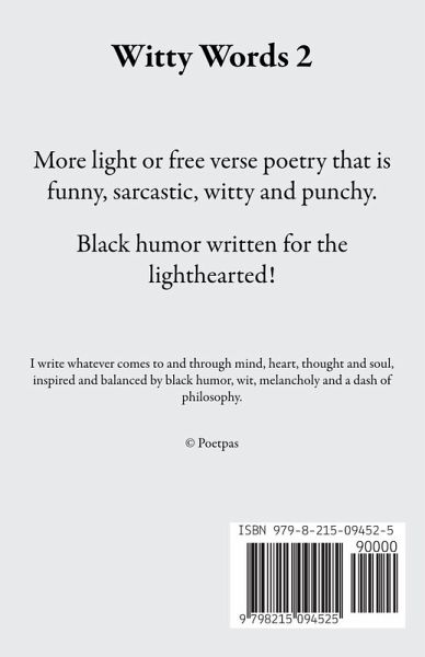 Witty Words 2 More light or free verse poetry that is funny, sarcastic, witty and punchy. Black humor written for the lighthearted.