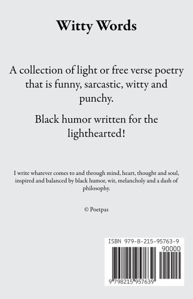 Witty Words A collection of light or free verse poetry that is funny, sarcastic, witty and punchy. Black humor written for the lighthearted.