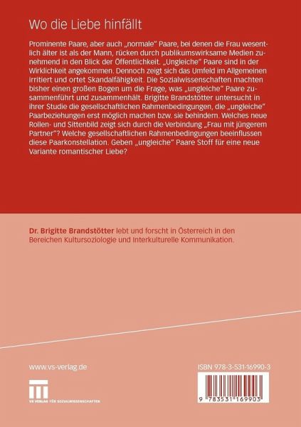 Die Sozialwissenschaften machten bisher einen großen Bogen um die Frage, was "ungleiche" Paare zusammenführt und zusammenhält. Brigitte Brandstötter untersucht in ihrer Studie die gesellschaftlichen Rahmenbedingungen, die "ungleiche" Paarbeziehungen erst möglich machen bzw. sie behindern. Welches neue Rollen- und Sittenbild zeigt sich durch die Verbindung "Frau mit jüngerem Partner"? Welche gesellschaftlichen Rahmenbedingungen beeinflussen diese Paarkonstellation? Geben "ungleiche" Paare Stoff für eine neue Variante romantischer Liebe?