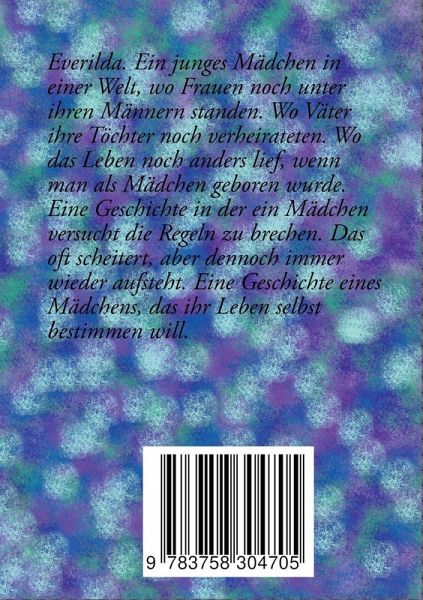 Everilda. Ein junges Mädchen in einer Welt, wo Frauen noch unter ihren Männern standen. Wo Väter ihre Töchter noch verheirateten. Wo das Leben noch anders lief, wenn man als Mädchen geboren wurde. Eine Geschichte in der ein Mädchen versucht die Regeln zu brechen. Das oft scheitert, aber dennoch immer wieder aufsteht. Eine Geschichte eines Mädchens, das ihr Leben selbst bestimmen will.