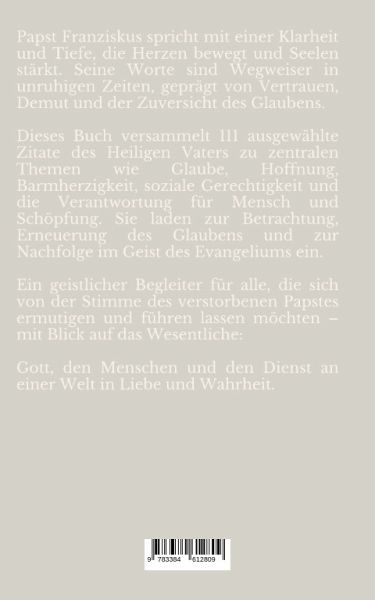 Wo Glaube lebt, wächst HoffnungPapst Franziskus begeistert und bewegt Millionen von Menschen mit seinen klaren, mitfühlenden und zugleich kraftvollen Worten. Als geistlicher Lehrer und moralische Stimme unserer Zeit spricht er zu Herzen - über Glaube, Hoffnung, soziale Gerechtigkeit, Verantwortung und die Liebe Gottes zu jedem Menschen."Wo Glaube lebt, wächst Hoffnung" versammelt 111 der inspirierendsten Zitate des Heiligen Vaters - thematisch geordnet und sorgfältig ausgewählt. Ob zur persönlichen Besinnung, als geistlicher Impuls im Alltag oder als Geschenk: Dieses Buch lädt dazu ein, die Botschaft von Papst Franziskus neu zu entdecken und sich davon stärken zu lassen.Mit einer Einführung zum Leben des Papstes, einer Übersicht über sein Pontifikat sowie Zitaten zu zentralen Themen wie Glaube, Nächstenliebe, Kirche, Schöpfung, Frieden, Familie