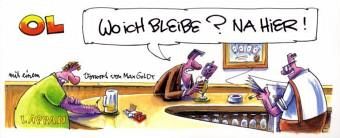 Woche für Woche ist der Cartoonist OL mit seinen Cartoons in der Berliner Zeitung zu sehen. Er gehört zu den Stars der Berliner Zeichnerszene. Ungewöhnlich wie der Inhalt sind die Formate der Zeichnungen: Schmale Streifen, die eine für Cartoons einzigartige Panoramaperspektive eröffnen.
