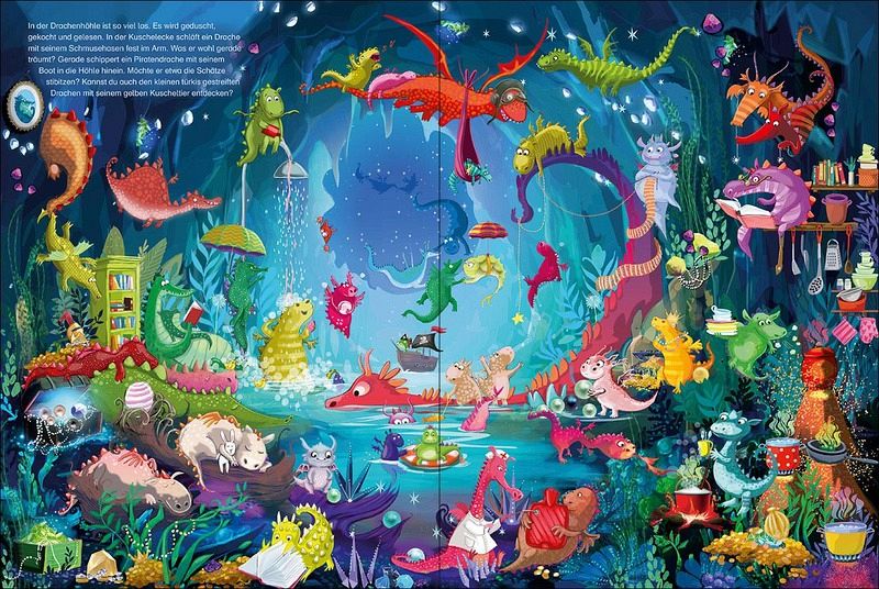 Drachen, wohin man nur schaut! Sie kochen, tanzen und messen sich im Wettflug. Doch ob das immer alles gut geht? Und wo hat sich der kleine blaue Drache versteckt?