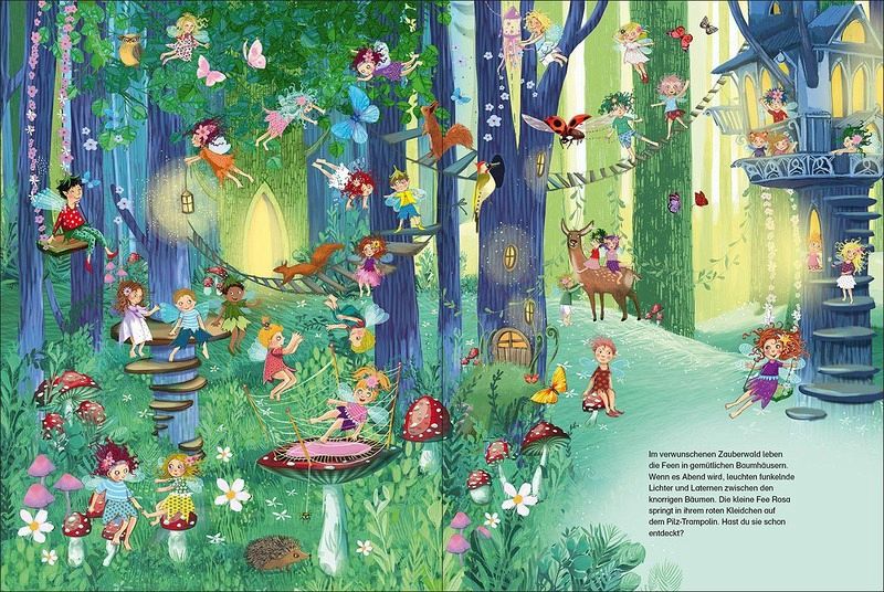 Im magischen Feenland ist richtig viel los! Einhörner und Schmetterlinge tummeln sich im verwunschenen Zauberwald. In der Feenschule wird gemalt und gespielt und mit den Marienkäfern fliegen die Feen zur bunten Blumenwiese. Doch wo hat sich in dem Gewimmel die kleine Fee Rosa versteckt? Viele kleine Details zum EntdeckenWunderbar stimmungsvolle IllustrationenWimmelbilder fördern die KonzentrationsfähigkeitAuf allen Seiten viele Details zum EntdeckenAnimierende Texte regen zum Weitererzählen anWimmelbuch zu dem starken Thema FeenZauberhaft-magische BildweltenWimmelspaß für Kinder ab 3 Jahren