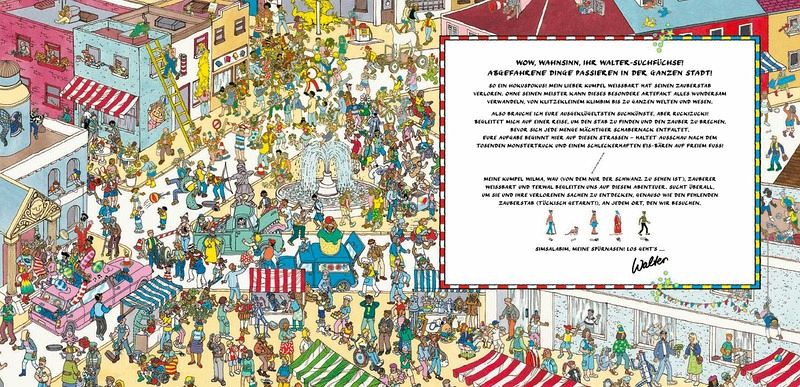 Folgt Walter und seinen Freunden auf der Suche nach dem heimtückischen Zauberstab und löst dieses gewaltige Durcheinander. Zwölf wimmelige und durcheinander geratene Szenen bescheren allen Wo ist Walter?-Fans und denen, die es noch werden, unendlichen und faszinierenden Suchspaß. Lustige Beschäftigung und Digital Detox für die ganze Familie.