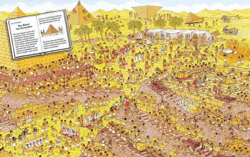 Ein Walter-Such-und-Finde-Wimmel-Bilderbuch: Walter und seine Freunde haben sich unter Steinzeitmenschen, alten Ägyptern, Wikingern, Cowboys und vielen anderen versteckt. Viel Spaß bei der Suche!