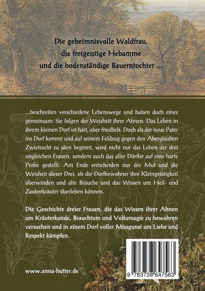 Die geheimnisvolle Waldfrau,die freigeistige Hebammeund die bodenständige Bauerntochter ... ...beschreiten verschiedene Lebenswege und haben doch eines gemeinsam: Sie folgen der Weisheit ihrer Ahnen. Das Leben in ihrem kleinen Dorf ist hart, aber friedlich. Doch als der neue Pater ins Dorf kommt und auf seinem Feldzug gegen den Aberglauben Zwietracht zu säen beginnt, wird nicht nur das Leben der drei ungleichen Frauen, sondern auch das aller Dörfler auf eine harte Probe gestellt. Am Ende entscheiden nur der Mut und die Weisheit dieser Drei darüber, ob die Dorfbewohner ihre Kleingeistigkeit überwinden und alte Bräuche und das Wissen um Heil- und Zauberkräuter überleben können.Die Geschichte dreier Frauen, die das Wissen ihrer Ahnen um Kräuterkunde, Brauchtum und Volksmagie zu bewahren versuchen und in einem Dorf voller Missgunst um Liebe und Respekt kämpfen.