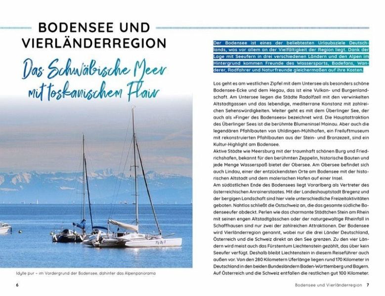 Das komplette Bodensee-Ufer wird in diesem Reiseführer rundum abgedeckt, Deutschland, Österreich und Schweiz