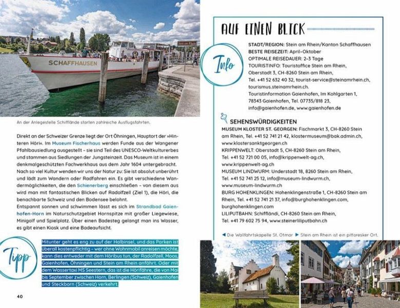 Zahlreiche Tipps für eine tolle Auszeit am Bodensee sind enthalten! Ich konnte mir im Vorfeld meiner Planung sehr gut einen Überblick über die Region verschaffen, ob nun für ein Wochenende oder einen längeren Urlaub mit mehreren Stellplatzwechseln.