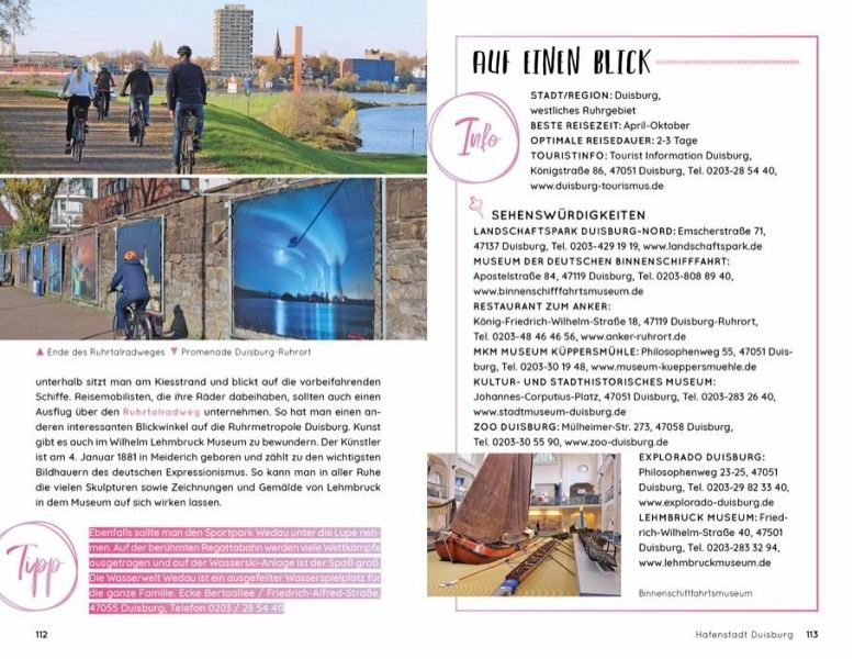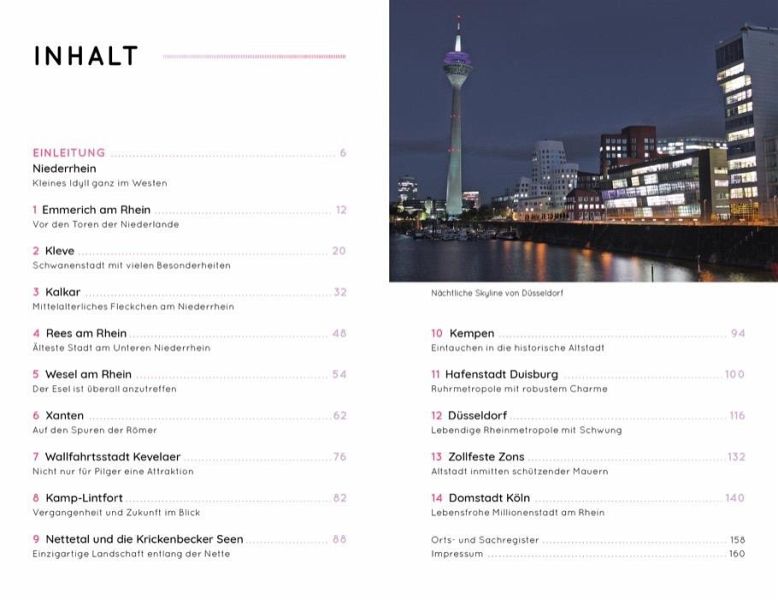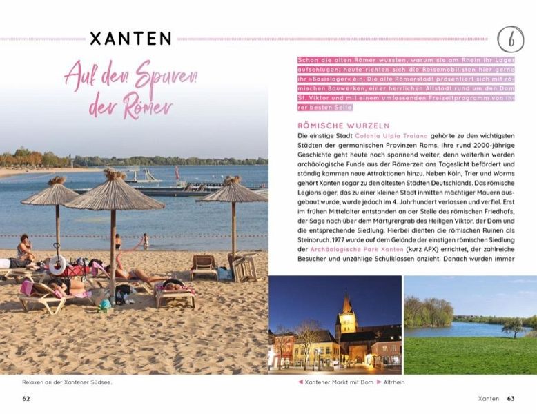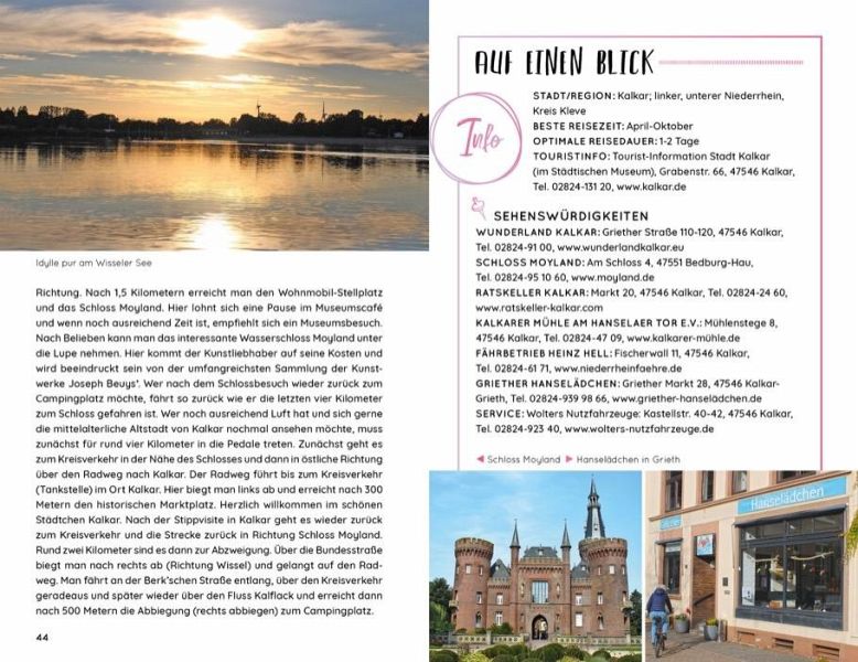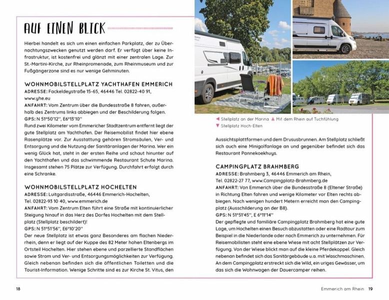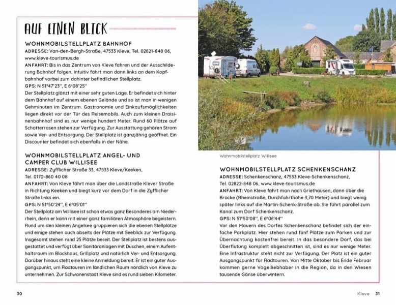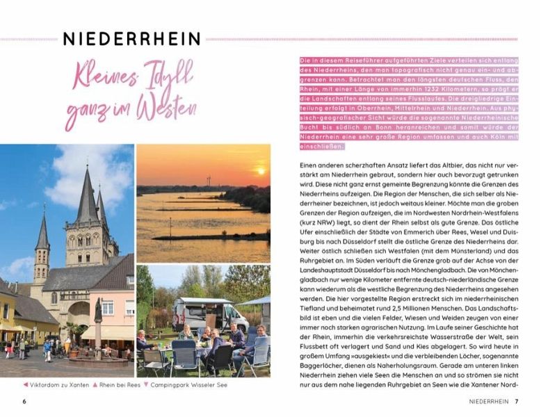 Am flachen Niederrhein mit seinen vielen Stell- und Campingplätzen ist man mit dem Reisemobil bestens unterwegs. Das Buch stellt die malerische Landschaft entlang des längsten deutschen Flusses vor. Reizvolle Städte und lebendige Metropolen wie Düsseldorf oder Köln fehlen hier ebenso wenig wie zahlreiche Hinweise zu den Aktivitäten, denn es bereitet viel Freude, die Region zu Fuß, mit dem Fahrrad, im Kanu oder mit der Draisine zu entdecken.
