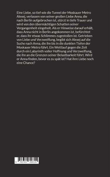 Eine Liebe, so tief wie die Tunnel der Moskauer Metro Alexej, verlassen von seiner großen Liebe Anna, die nach Berlin aufgebrochen ist, stürzt in tiefe Trauer und wird von den übermächtigen Schatten seiner Vergangenheit eingeholt. Als er Hinweise darauf erhält, dass Anna nicht in Berlin angekommen ist, befürchtet er, dass ihr etwas Schlimmes zugestoßen ist. Getrieben von Liebe und Verzweiflung, begibt sich Alexej auf die Suche nach Anna, die ihn bis in die dunklen Tiefen der Moskauer Metro führt. Ein Wettlauf gegen die Zeit durch ein Labyrinth voller Hoffnung und Verzweiflung, die ihn an die Grenzen seiner Belastbarkeit führt. Wird er Anna finden, bevor es zu spät ist? Hat ihre Liebe noch eine Chance?