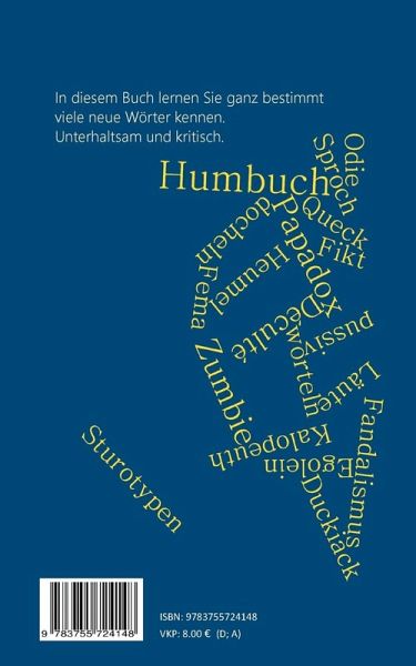 Witzige und kreative Neubildungen zum deutschen Wortschatz.Alles im Lexikonformat und tatsächlich nie im Duden. Natürlich!Zeitkritische und witzige Einsprengsel.Unterhaltsame Lektüre. Ironisch und aus der Distanz.