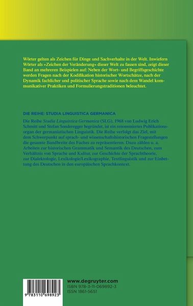Wörter gelten als Zeichen für Dinge und Sachverhalte in unserer Welt. Verändern sich diese, so verändern sich auch ihre Stellvertreter - die Wörter. Sie werden zu "Zeichen der Veränderung". Wie diese Veränderungen erfasst werden können, wird in diesem Band an mehreren Beispielen aufgezeigt: Aus dem Bereich der Wort- und Begriffsgeschichte werden die Lexeme Geschmack und fjale (alban. ,Wort'), der Begriff Mitteleuropa und eine Wortgeschichte des Samstags betrachtet. Bei der Kodifikation historischer Wortschätze stehen die Fremdwortlexikographie und -glossare des 17. Jahrhunderts sowie die Erforschung des Valenzwandels und grammatikographische Betrachtungen zu Verbpartikeln im Mittelpunkt. Entwicklungen im Bereich der Terminologie oder Tendenzen zur Überlänge in der juristischen Sprache finden sich in einem Abschnitt zu Fachwortschätzen und zu politischer Sprache ebenso wie die Analyse von Rassenkonzepten in der völkischen Bewegung oder jüdische Reaktionen auf die antisemitische Propaganda in Deutschland. Formulierungstraditionen und pragmatische Phänomene beschließen diesen Band, so der Gebrauch von Vor- und Nachnamen, Worte und Formeln (west-)europäischer Epistolographie, Dialektales und die gegenwartssprachliche Perspektive auf Authentizität.