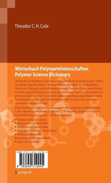 Polymers are an impressively diverse and versatile group of macromolecular compounds contributing significantly to progress and well-being in modern society. In this "era of polymers" the present enormous pace of new developments coupled with an unimaginable potential in polymer science is creating an exciting stimulation of a rapidly growing industry. International communication in the field of polymers requires an efficient use of the according terminology. This means the need of consulting according sources - especially dictionaries. This »Polymer Science Dictionary« with some 12,500 terms in both languages, German and English, is an attempt to serving the growing community of chemists, physicists, and engineers in research, academia, and industry involved with polymers. A detailed list of acronyms of the most important polymers adds to this overall handy and useful ready-reference. An indispensable tool for anyone working in the field of polymers.