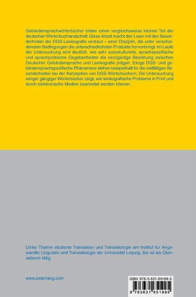 Gebärdensprachwörterbücher bilden einen vergleichsweise kleinen Teil der deutschen Wörterbuchlandschaft. Diese Arbeit macht den Leser mit den Besonderheiten der DGS-Lexikografie vertraut - einer Disziplin, die unter verschiedensten Bedingungen die unterschiedlichsten Produkte hervorbringt. Im Laufe der Untersuchung wird deutlich, wie sehr soziokulturelle, sprachspezifische und sprachpolitische Gegebenheiten die einzigartige Beziehung zwischen Deutscher Gebärdensprache und Lexikografie prägen. Einige DGS- und gebärdensprachspezifische Phänomene stehen beispielhaft für die vielfältigen Besonderheiten bei der Konzeption von DGS-Wörterbüchern. Die Untersuchung einiger gängiger Wörterbücher zeigt, wie lexikografische Probleme in Print und durch elektronische Medien bearbeitet werden können.