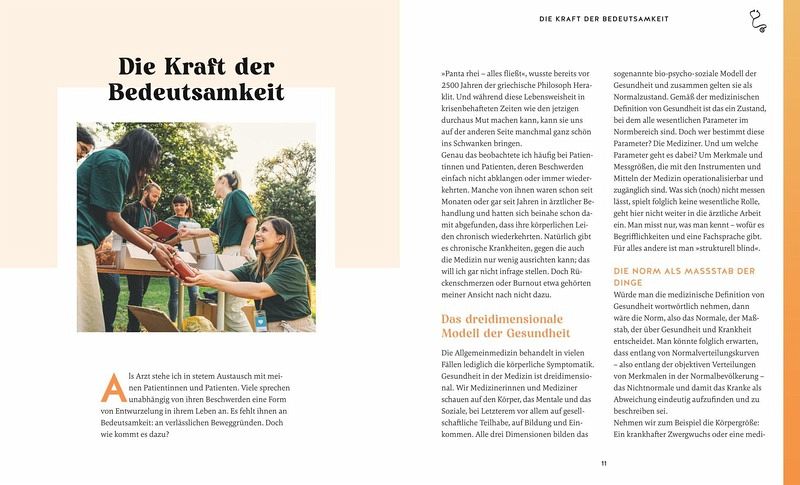 Mit dem Praxisbuch zum Spiegel-Bestseller "Wofür stehen Sie morgen auf?" lässt sich in nur 4 Wochen die vierte Dimension der Gesundheit einfach zu Hause in den Alltag integrieren. Die von Prof. Dr. Esch erforschte Säule der Medizin, die Bedeutsamkeit, fördert nachhaltige Gesundheit und Heilung. Das Schritt-für-Schritt-Programm erschließt das Geheimnis der Verbundenheit und sorgt für mehr Wohlgefühl sowie Verwurzelung im Leben. Übungen wie Meditation, Atemtechniken und Body-Scan stärken Gesundheit, Selbstfürsorge und die Verbindung zum eigenen Körper, was die Heilung unterstützt. Das Buch bietet eine praktische Anleitung für alle, die gesund bleiben, sich von Krankheiten erholen und ein erfülltes Leben führen möchten.