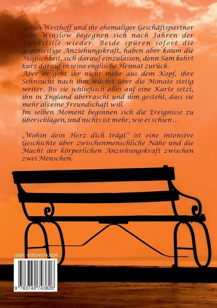 Sarah und ihr ehemaliger Geschäftspartner Sam begegnen sichnach Jahren der Funkstille wieder. Beide spüren sofort diegegenseitige Anziehungskraft, haben aber kaum die Möglichkeit,sich darauf einzulassen, denn Sam kehrt kurz darauf in seineenglische Heimat zurück. Doch Sarah kann ihn nach einem einzigen, alles verändernden Kuss nicht vergessen, ihre Sehnsucht wächst stetig. Also setzt sie schließlich alles auf eine Karte und überrascht ihn in England. Die Ereignisse überschlagen sich ..."Wohin dein Herz dich trägt" ist eine intensive Geschichte über zwischenmenschliche Nähe und die Macht der körperlichen Anziehungskraft zwischen zwei Menschen.
