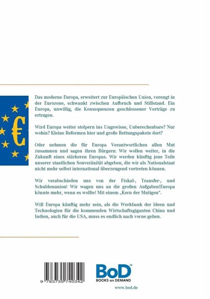 Das moderne Europa, erweitert zur Europäischen Union, verengt in der Eurozone, schwankt zwischen Aufbruch und Stillstand, gefangen in Brüsseler Bürokratie und nationalen Egoismen, überfordert von Krisen, die als Schuldenkrisen begannen und sich zu Staatskrisen auswuchsen. Ein Europa, unwillig, die Konsequenzen geschlossener Verträge zu ertragen.Wird Europa weiter stolpern ins Ungewisse, Unberechenbare? Nur wohin? Kleine Reformen hier und große Rettungspakete dort? Oder nehmen die für Europa Verantwortlichen allen Mut zusammen und sagen ihren Bürgern: Wir wollen weiter, in die Zukunft eines stärkeren Europas. Wir werden künftig jene Teile unserer staatlichen Souveränität abgeben, die wir als Nationalstaat nicht mehr selbst international überzeugend vertreten können. Wir verabschieden uns von der Fiskal-, Transfer-, und Schuldenunion! Wir wagen uns an die großen Aufgaben! Europa könnte mehr, wenn es denn wollte! Mit einem "Kern der Mutigen". Mit den starken Staaten. Will Europa künftig mehr sein, als die Werkbank der Ideen und Technologien für die kommenden Wirtschaftsgiganten China und Indien, auch für die USA, muss es endlich vorwärts stolpern! Zu neuen Ufern, nicht in den vermeintlich sicheren Hafen der Stagnation. Die aufstrebenden Staaten werden keine Rücksicht auf das zerstrit-tene Europa nehmen. Sie wollen so werden, wie Europa einst war: Führend in der Entwicklung der Welt. Aber ihrer eigenen Welt!