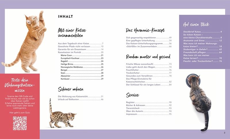 Ganzheitliches Wohlfühlprogramm: Von ausgewogener Ernährung über sorgfältige Pflege bis hin zur Gesunderhaltung - dieses Buch bietet alle wichtigen Tipps für das Wohl Ihrer WohnungskatzeMit großem Online-Lernquiz - so kann das erworbene Wissen spielerisch getestet, gefestigt oder aufgefrischt werden.