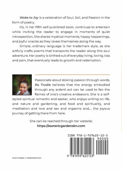 Woke to Joy is a celebration of Soul, Soil, and Passion in the form of poetry. Ilis, in her fifth self-published book, continues to entertain while inviting the reader to engage in moments of quiet introspection. She shares mystical moments, happy happenings, and joyful oracles as they reveal themselves along the way. Simple, ordinary language is her trademark style, as she artfully crafts poems that transports the reader along this soul adventure. Her poetry is birthed out of everyday living, loving, loss and pain, that eventually leads to growth and redemption.