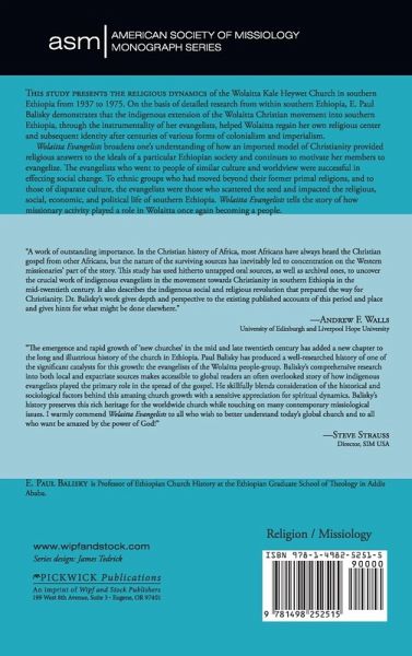 This study presents the religious dynamics of the Wolaitta Kale Heywet Church in southern Ethiopia from 1937 to 1975. On the basis of detailed research from within southern Ethiopia, E. Paul Balisky demonstrates that the indigenous extension of the Wolaitta Christian movement into southern Ethiopia, through the instrumentality of her evangelists, helped Wolaitta regain her own religious center and subsequent identity after centuries of various forms of colonialism and imperialism. Wolaitta Evangelists broadens one's understanding of how an imported model of Christianity provided religious answers to the ideals of a particular Ethiopian society and continues to motivate her members to evangelize. The evangelists who went to people of similar culture and worldview were successful in effecting social change. To ethnic groups who had moved beyond their former primal religions, and to those of disparate culture, the evangelists were those who scattered the seed and impacted the religious, social, economic, and political life of southern Ethiopia. Wolaitta Evangelists tells the story of how missionary activity played a role in Wolaitta once again becoming a people.