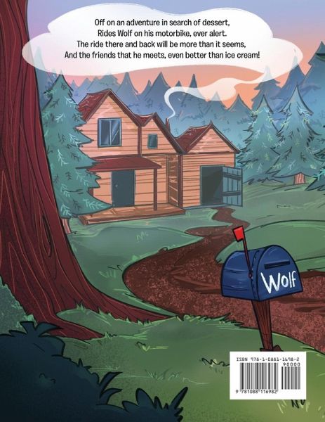 Off on an adventure in search of dessert, Rides Wolf on his motorbike, ever alert. The ride there and back will be more than it seems, And the friends that he meets, even better than ice cream!