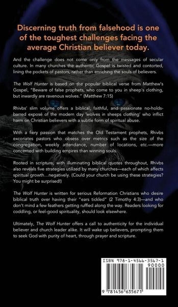 Discerning truth from falsehood is one of the toughest challenges facing the average Christian believer today. And the challenge does not come only from the messages of secular culture. In many churches the authentic Gospel is twisted and contorted, lining the pockets of pastors, rather than enriching the souls of believers. 'The Wolf Hunter' is based on the popular biblical verse from Matthew's Gospel, "Beware of false prophets, who come to you in sheep's clothing, but inwardly are ravenous wolves." (Matthew 7:15) Rhivbs' slim volume offers a biblical, faithful, and passionate no-holds-barred exposé of the modern day 'wolves in sheeps clothing' who inflict harm on Christian believers with a subtle form of spiritual abuse. With a fiery passion that matches the Old Testament prophets, Rhivbs excoriates pastors who obsess over metrics such as the size of the congregation, weekly attendance, number of locations, etc.-more concerned with building empires than winning souls. Rooted in scripture, with illuminating biblical quotes throughout, Rhivbs also reveals five strategies utilized by many churches-each of which affects spiritual growth...negatively. (Could your church be using these strategies? You might be surprised!) 'The Wolf Hunter' is written for serious Reformation Christians who desire biblical truth over having their "ears tickled" (2 Timothy 4:3)-and who don't mind a few feathers getting ruffled along the way. Readers looking for coddling, or feel-good spirituality, should look elsewhere. Ultimately, 'The Wolf Hunter' offers a call to authenticity for the individual believer and church leader alike. It will wake up believers, prompting them to seek God with purity of heart, through prayer and scripture.