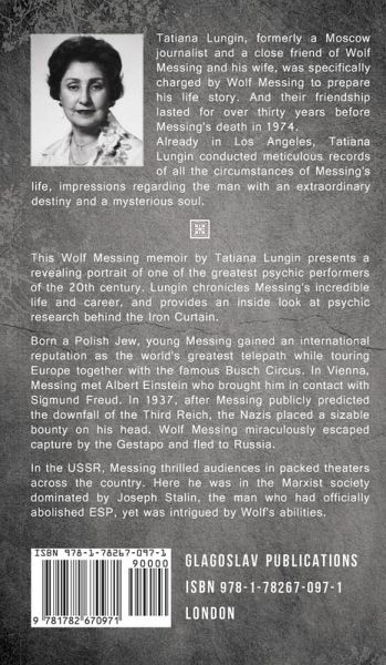 In this, the first biography and personal memoir of Wolf Messing to appear in the West, Tatiana Lungin limns a revealing portrait of one of the greatest psychic performers of the twentieth century. Born a Polish Jew near Warsaw, Messing ran away from home at the age of eleven and soon discovered his psychic gifts. Supporting himself by performing mind-reading acts in Berlin theaters, at fourteen Messing was sold by his unscrupulous manager to the famous Busch Circus. In no time Wolf gained an international reputation as the world's greatest telepath as he toured the capitals of Europe. In Vienna Messing met Albert Einstein who brought him to the apartment of another admirer of his abilities, Sigmund Freud. His touring days ended abruptly in 1937 when, after Messing publicly predicted the downfall of the Third Reich, the Nazis placed a sizable bounty on his head. Summoning all his hypnotic powers, he escaped capture by the Gestapo and fled to Russia. In the USSR Messing's displays of telepathy, uncannily accurate predictions, and psychic crime solving gained him a rare celebrity status. While most parapsychologists were forced to conduct psychic research in secrecy, Messing thrilled audiences in packed theaters across the country. His fame was all the more amazing coming as it did in the Marxist society dominated by Joseph Stalin, the man who had officially abolished ESP. Even Stalin himself was intrigued by Wolf's ability to influence thoughts at a distance, and devised a number of unusual tests of Messing's powers. The stories of how Messing successfully took on Stalin's challenges to hypnotically elude his personal security force, and even commit psychic bank robbery, are colorfully related. As Messing's longtime friend and confidante, Lungin draws from personal notes, conversations with Wolf, and reports of other eyewitnesses of his performances to chronicle Messing's incredible life and career. At the same time, she provides an inside look at parapsychology and psychic research behind the Iron Curtain.