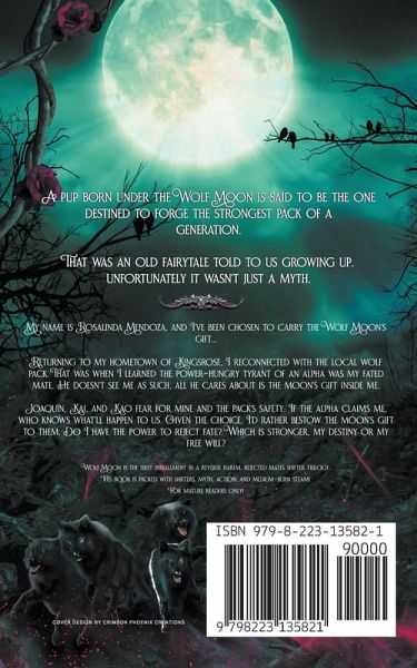 A pup born under the Wolf Moon is said to be the one destined to forge the strongest pack of a generation. That was an old fairytale told to us growing up. Unfortunately it wasn't just a myth. My name is Rosalinda Mendoza, and I've been chosen to carry the Wolf Moon's gift... Returning to my hometown of Kingsrose, I reconnected with the local wolf pack. That was when I learned the power-hungry tyrant of an alpha was my fated mate. He doesn't see me as such, all he cares about is the moon's gift inside me. Joaquin, Kai, and Kao fear for mine and the pack's safety. If the alpha claims me, who knows what'll happen to us. Given the choice, I'd rather bestow the moon's gift to them. Do I have the power to reject fate? Which is stronger, my destiny or my free will? Wolf Moon is the first installment in a reverse harem, rejected mates shifter trilogy. This book is packed with shifters, myth, action, and medium-burn steam! For mature readers only!