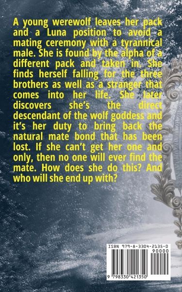 A young werewolf leaves her pack and a Luna position to avoid a mating ceremony with a tyrannical male. She is found by the alpha of a different pack and taken in. She finds herself falling for the three brothers then a stranger comes into her life. She later discovers she's the direct descendant of the wolf goddess and it's her duty to bring back the natural mate bond that has been lost. How does she do this? And who will she end up with?