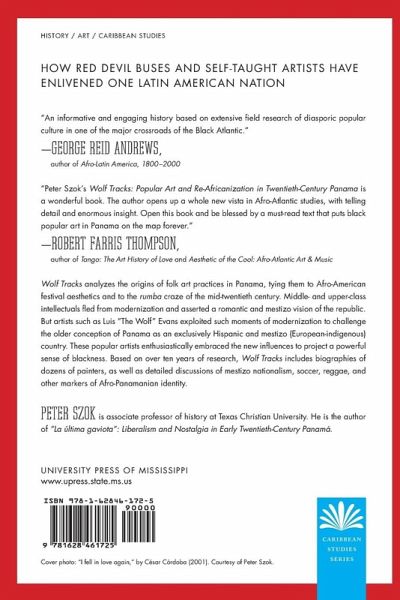 How red devil buses and self-taught artists have enlivened one Latin American nation Popular art in Panama is a masculine and working-class genre, associated with the country's black population. Its practitioners are self-taught, commercial artists, whose high-toned designs, vibrant portraits, and landscapes appear in cantinas, barbershops, and restaurants. The red devil buses are the tradition's most visible manifestation. Old school buses are imported from the United States and provide public transportation in Colon and Panama City. Their owners hire the painters to attract customers with eye-catching depictions of singers and actors, boastful phrases, and vivid representations of both local and exotic panoramas. The red devils feature powerful stereo systems and dominate the urban environment with their blasting reggae, screeching brakes, horns, sirens, whistles, and roaring mufflers. Wolf Tracks analyzes the origins of these practices, tying them to Afro-American festival aesthetics and to the rumba craze of the mid-twentieth century. Middle- and upper-class intellectuals fled from modernization and asserted a romantic and mestizo vision of the republic. But artists such as Luis "The Wolf" Evans exploited such moments of modernization to challenge the older conception of Panama as an exclusively Hispanic and mestizo (European-indigenous) country. These popular artists enthusiastically embraced the new influences to project a powerful sense of blackness. Based on over ten years of research, Wolf Tracks includes biographies of dozens of painters, as well as detailed discussions of mestizo nationalism, soccer, reggae, and other markers of Afro-Panamanian identity.