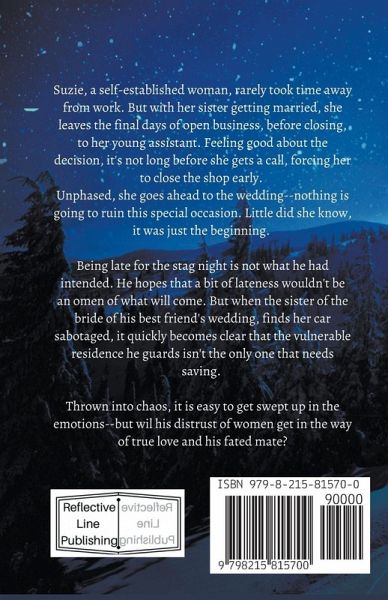 Suzie, a self-established woman, rarely took time away from work. But with her sister getting married, she leaves the final days of open business, before closing, to her young assistant. Feeling good about the decision, it's not long before she gets a call, forcing her to close the shop early. Unphased, she goes ahead to the wedding--nothing is going to ruin this special occasion. Little did she know, it was just the beginning. Being late for the stag night is not what he had intended. He hopes that a bit of lateness wouldn't be an omen of what will come. But when the sister of the bride of his best friend's wedding, finds her car sabotaged, it quickly becomes clear that the vulnerable residence he guards isn't the only one that needs saving. Thrown into chaos, it is easy to get swept up in the emotions--but wil his distrust of women get in the way of true love and his fated mate?