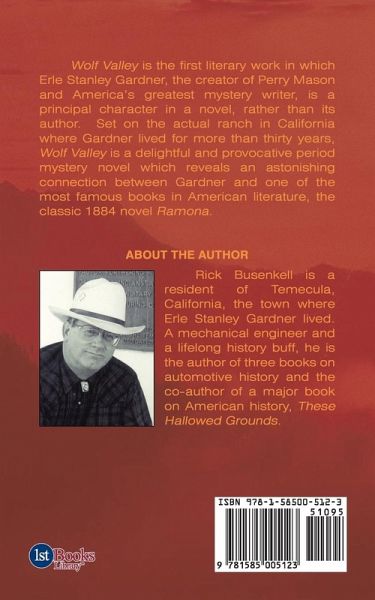 Eric Lloyd, a private investigator from Santa Monica, is called in to help investigate the serial murders of two young Indian women near a small rural town in southern California. The caller is none other than Erle Stanley Gardner, America's most famous mystery writer, who is involved because the murders happened so close to his ranch. Together Lloyd and Gardner aid the county sheriff in attempting to solve the baffling murders, which appear to have no motive. Most mysterious of all, the killer seems to be deliberately drawing attention to the memory of a long-dead pioneer of the area, whose grave is connected to a curse well-known to the local inhabitants. To solve crimes committed in 1954, Gardner and Lloyd find they must understand a crime committed in 1875 -- a crime which victimized the local Indian tribe, and in which the pioneer was involved. Set on the actual ranch of Erle Stanley Gardner, Wolf Valley is a delightful and provocative period murder mystery which will appeal to mystery fans everywhere. A masterpiece of accurate historical research combined with colorful fiction, it offers a fascinating view of the great mystery writer and his lifestyle, set in the actual surroundings where he lived for more than thirty years. It also reveals an astonishing and previously unknown connection between Gardner and one of the most famous works in American literature, the classic 1884 novel Ramona.