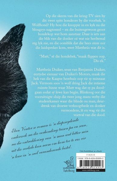 Eben Venter se roman is 'n diepsnydende ondersoek na die verhouding tussen pa en seun, na die ontreddering van 'n man wat bitter min uit die verlede kan neem om hom toe te rus vir 'n lewe in 'n snel veranderende bestel. Intens. Ontstellend. 'n Meesterlike ontrafeling van die dun lyn van gevoel - Venter aan die toppunt van sy vermoëns.